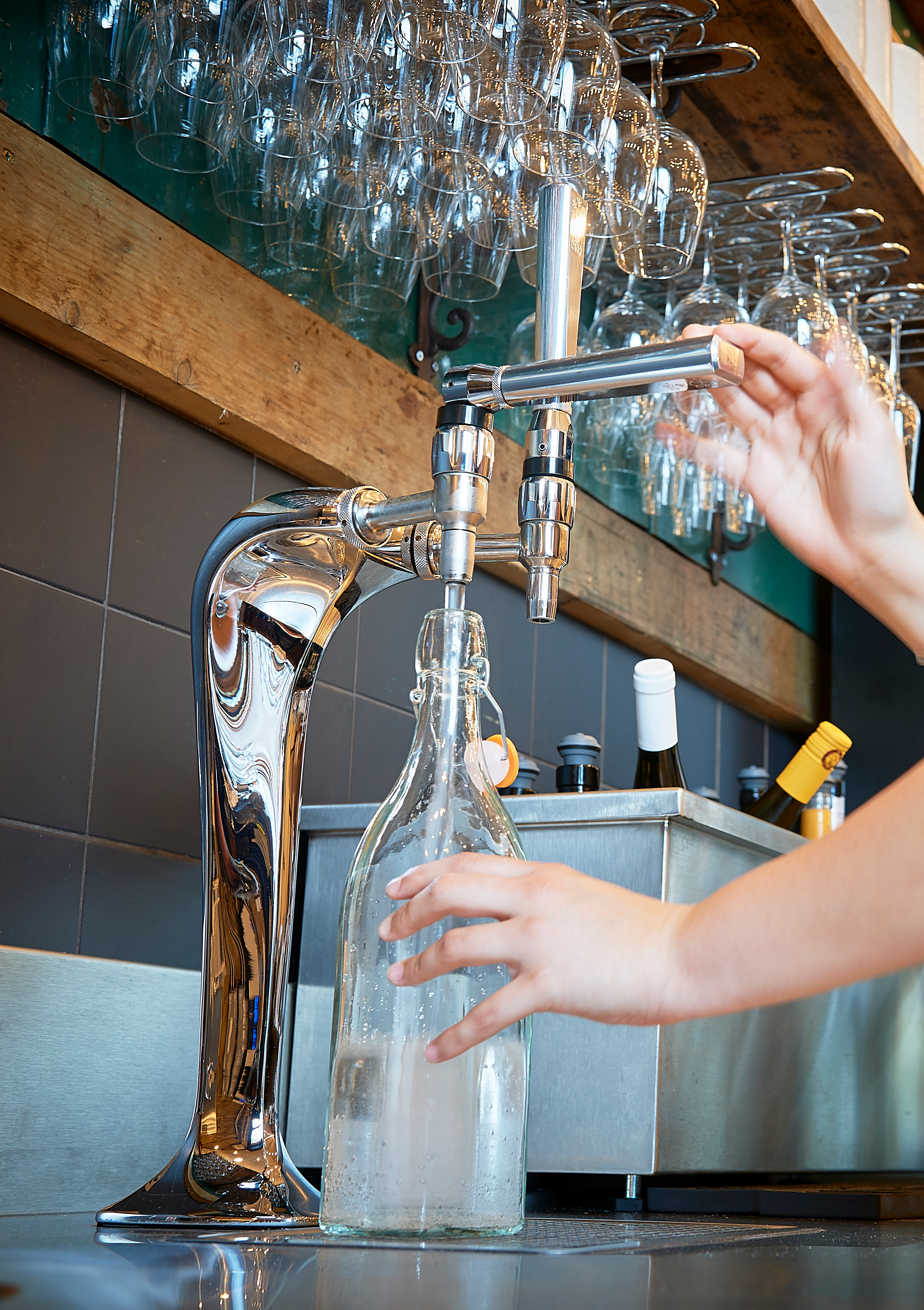 Brat decided to install one Undercounter Aqua Bottler with Mechanical tap to dispense large amounts of chilled water, both still and sparkling. The unit is positioned behind the bar for the convenience of their staff.