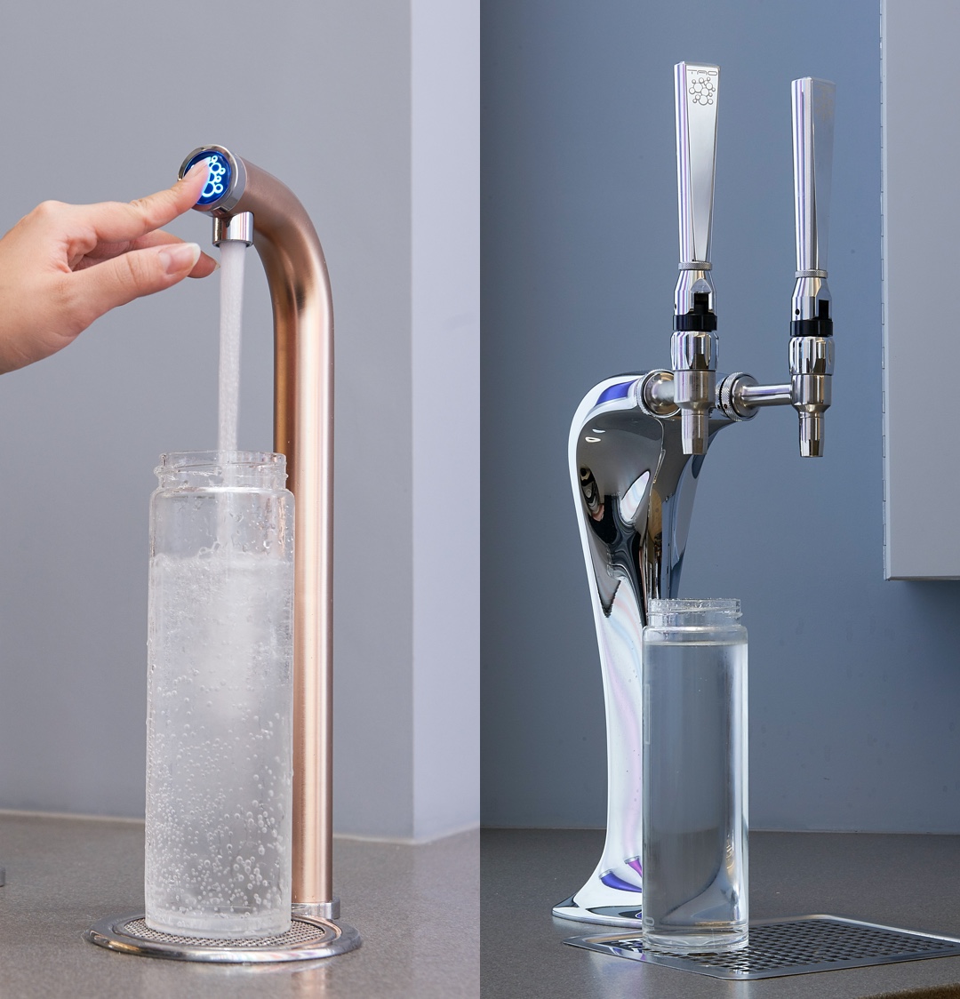 Aqua illi, Aqua Alto, and the countertop and undercounter Aqua Bottlers are all high-volume water dispensers that contribute to a reduction in single-use plastic bottles.
