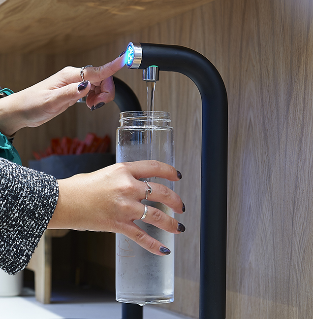 Boiling, chilled, and sparkling water. Three taps. One base unit. And don’t forget the colour. What colour? Any colour! Great look. No queues.