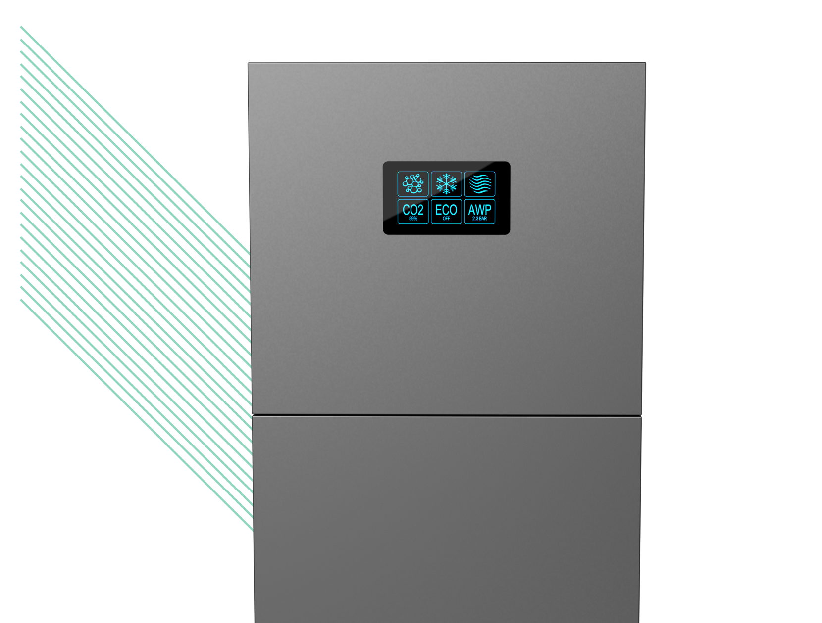 The dual pump system provides a back-up solution in the event of pump malfunction, guaranteeing zero downtime. Fully controllable water supply (with ECO mode) and R290 cooling technology contribute to a considerable reduction in energy consumption.