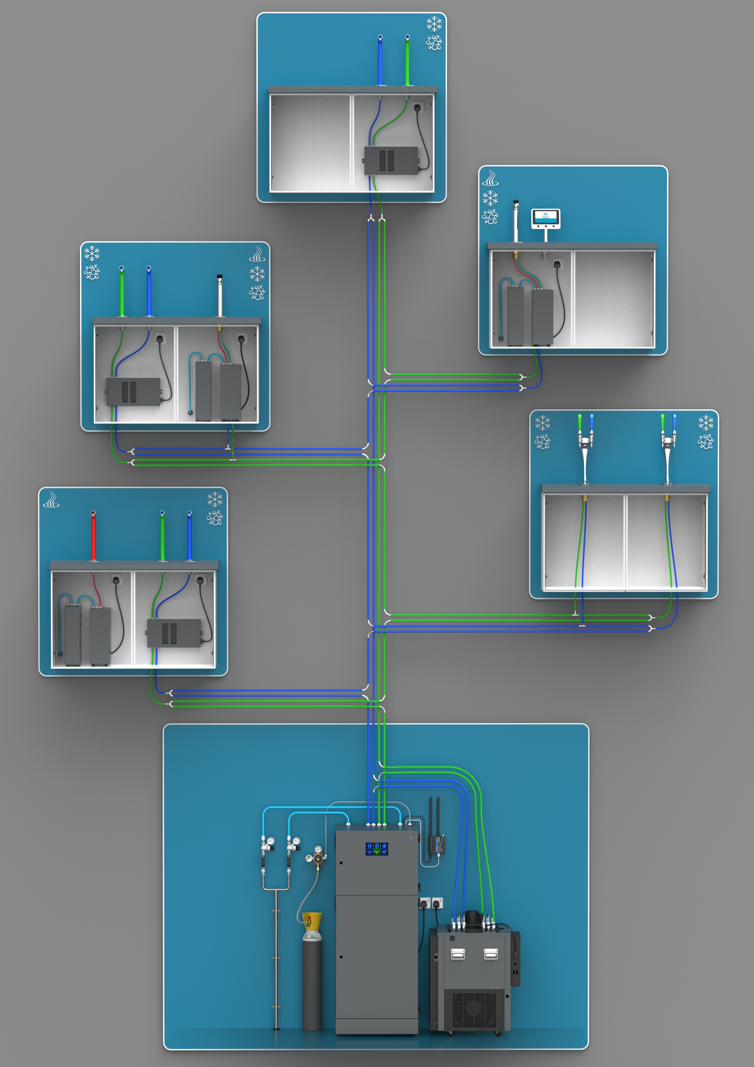 A centralised and fully monitored water distribution system that delivers high volumes of chilled water – still and sparkling – to multiple dispensers throughout an entire building.